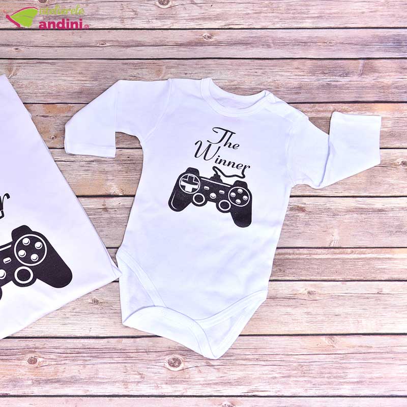The Winner este ideal pentru copilașii ai căror tătici sunt pasionați de jocurile video. Poate fi realizat pe diverse mărimi, iar mânecile pot fi scurte sau lungi, în funcție de preferințe.