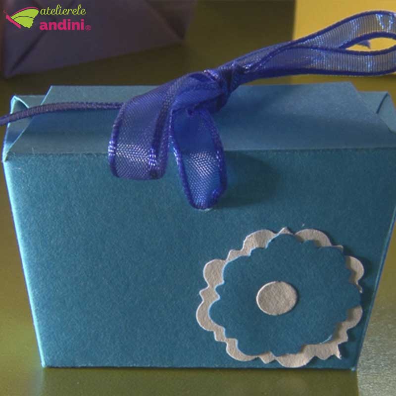 Cutiuța se livrează asamblată, pregătită pentru a fi umplută cu bombonele sau alte mici suprize pentru invitați.