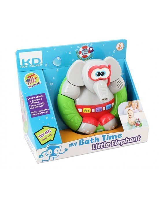 Apasati pe inelul de cauciuc din stanga pentru a vedea cum apa tasneste din trompa elefantului! Este atat de amuzant!