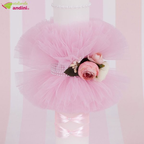 Una dintre cele mai noi lumânări de la Atelierele Andini este perfectă pentru botezul unei fetițe elegante și cochete. Lumânarea este  frumos decorată cu tull și mărgeluțe, iar elementul central al acesteia este reprezentat de un mini buchețel de flori.
