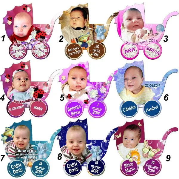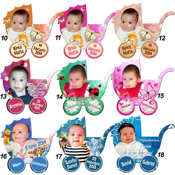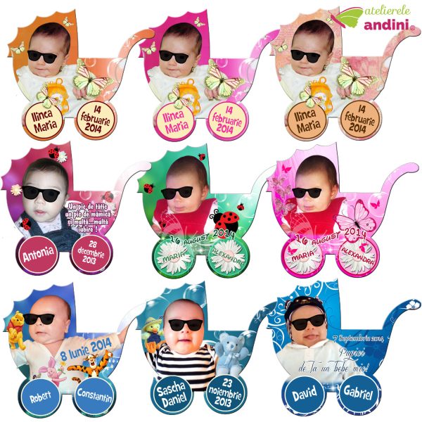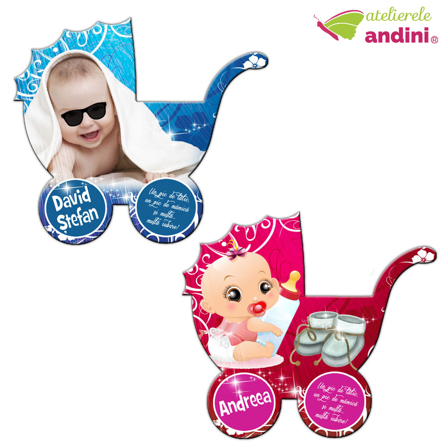 Alege o mărturie deosebită pentru botezul bebelușului tău și impresionează plăcut invitații frumosului eveniment. Poți opta pentru un model tip cărucior, plastifiat, personalizat cu nume bebe + dată botez sau cu fotografie.