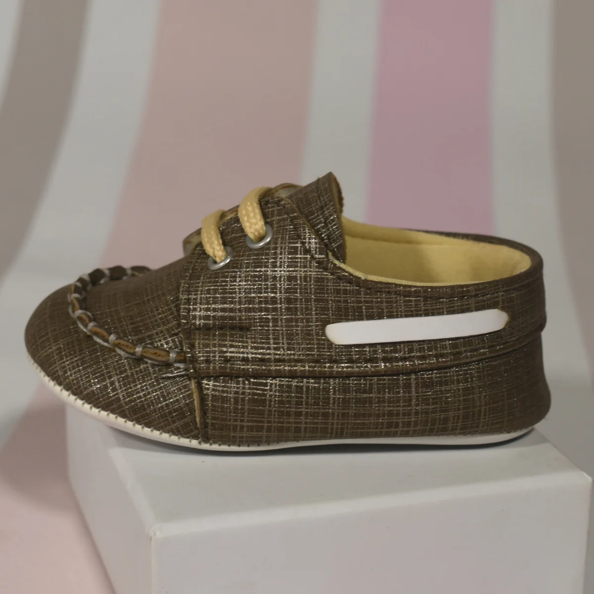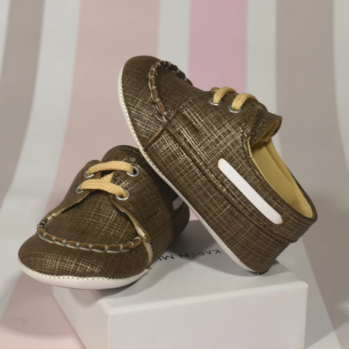 Pantofiorii Bej Inchis Sidefat sunt realizați din piele ecologică și sunt perfecți pentru primăvară sau toamnă. Se încalță foarte ușor și se leagă cu șireturi.