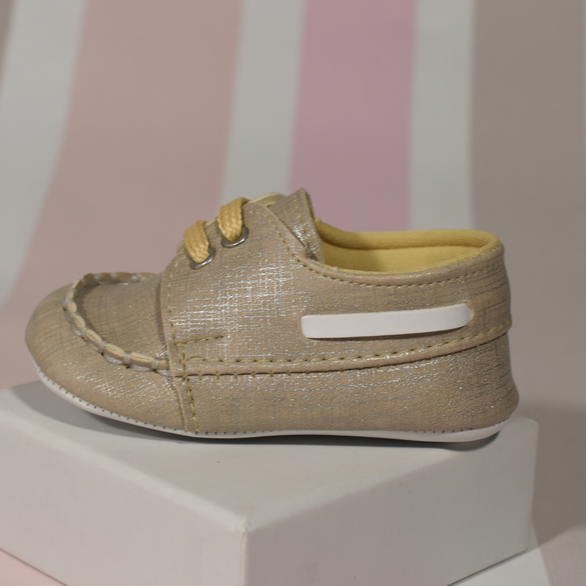Pantofiorii MBej Sidefat sunt realizați din piele ecologică și sunt perfecți pentru primăvară sau toamnă. Se încalță foarte ușor și se leagă cu șireturi.