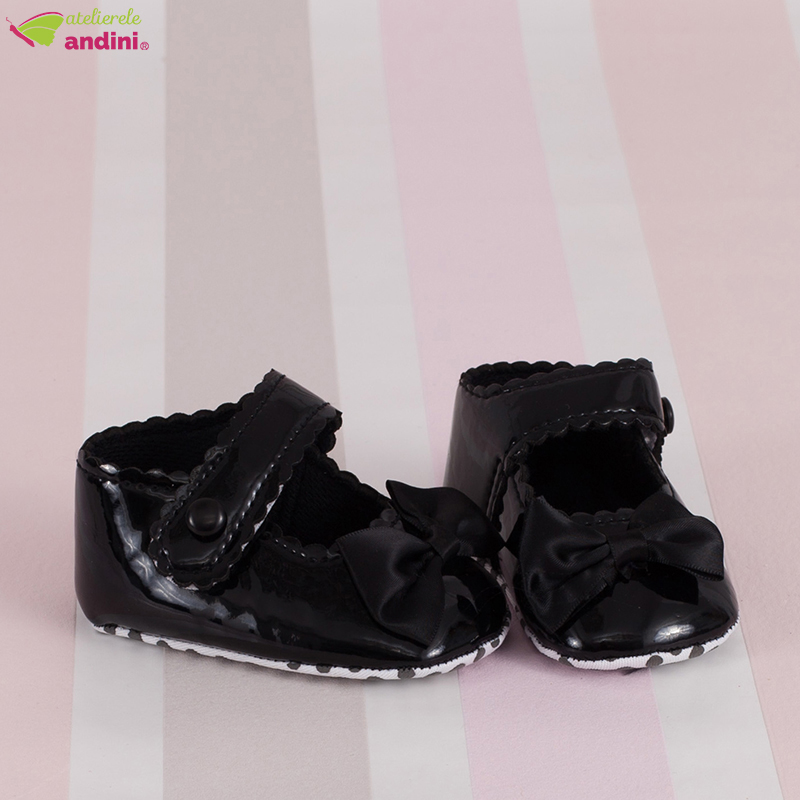Pantofiorii de lac Noir sunt realizați din piele ecologică și sunt perfecți pentru primăvară sau toamnă. Se încalță foarte ușor și se prind peste picioruș cu o bretea care se închide în lateral cu un năsturaș. Pot fi asortați cu ușurință cu multe costumașe de botez elegante, disponibile aici, în pagina dedicată.