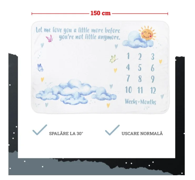 Paturica milestone plusata pentru fotografii memorabile Norisori Cozy Baby