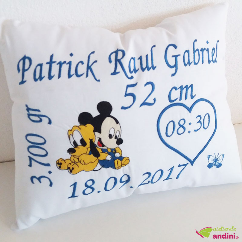 Păstrează cele mai speciale amintiri din viața bebelușului tău prin intermediul unei pernuțe multicolore, personalizată cu numele bebelușului, data nașterii, precum și cu greutatea/ dimensiunea avută la naștere.