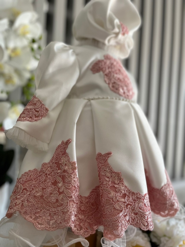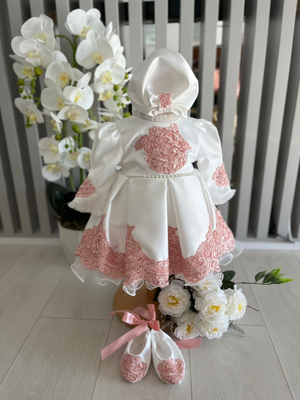 Botezul este unul dintre cele mai importante evenimente din viața unui copil. Deși este o sărbătoare frumoasă și cu mare însemnătate, cei mai mulți părinți și nași sunt speriați din cauza tuturor detaliilor care trebuie puse la punct. Noi îți venim în ajutor și îți propunem Rochiță Botez Smooth Satin , care va face ca fetița/ finuța ta să fie cea mai frumoasă printesa. Culoarea aleasă pentru această rochiță este alb cu roz, o culoare des aleasa de catre mamici, perfectă pentru creștinarea unui mic îngeraș.Setul contine: