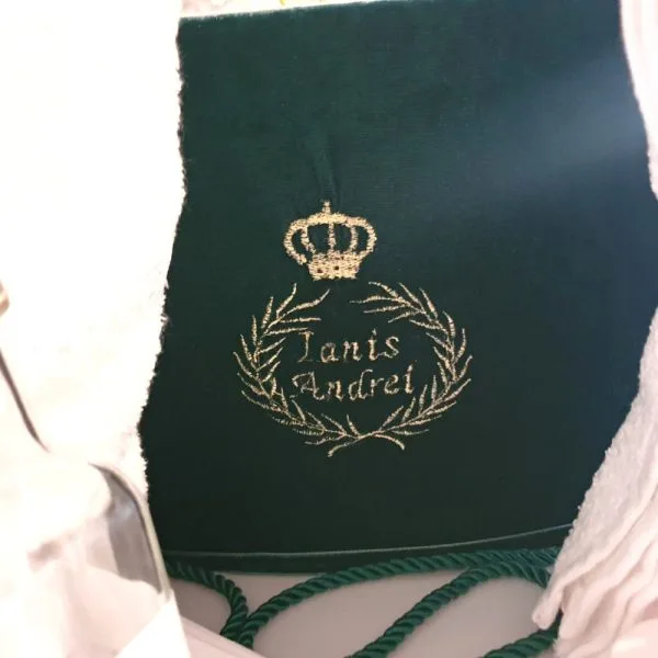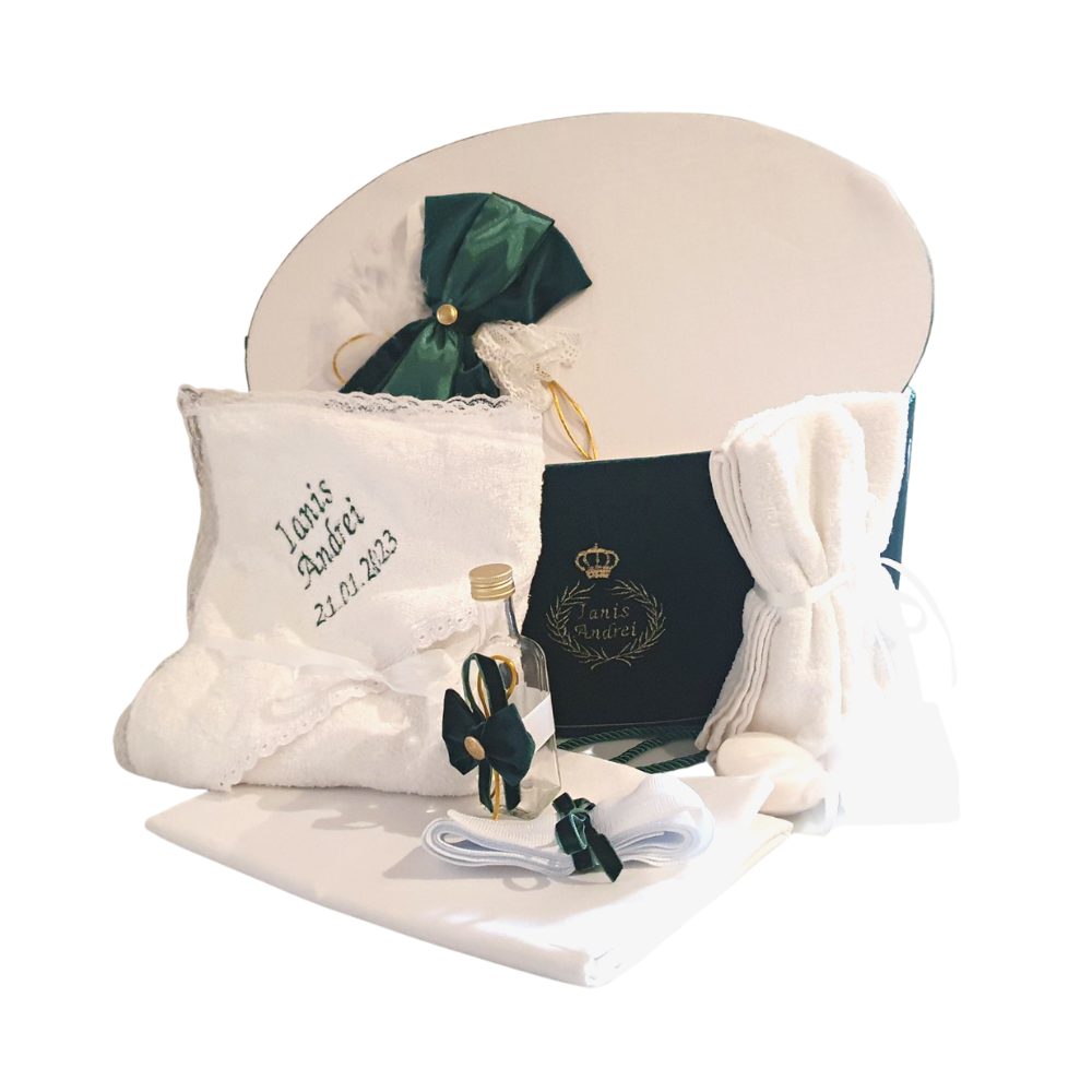 Trusoul de botez Green Prince este un model complet, format din 7 piese superb accesorizat cu catifea într-un stil elegant. Setul include cutia decorată și personalizată în mod gratuit pe lateral cu numele bebelușului. Funda albastru regal da o notă de rafinament întregului set de trusou. Panglicile confecționate din dantela sunt perfecte pentru o imagine de invidiat.