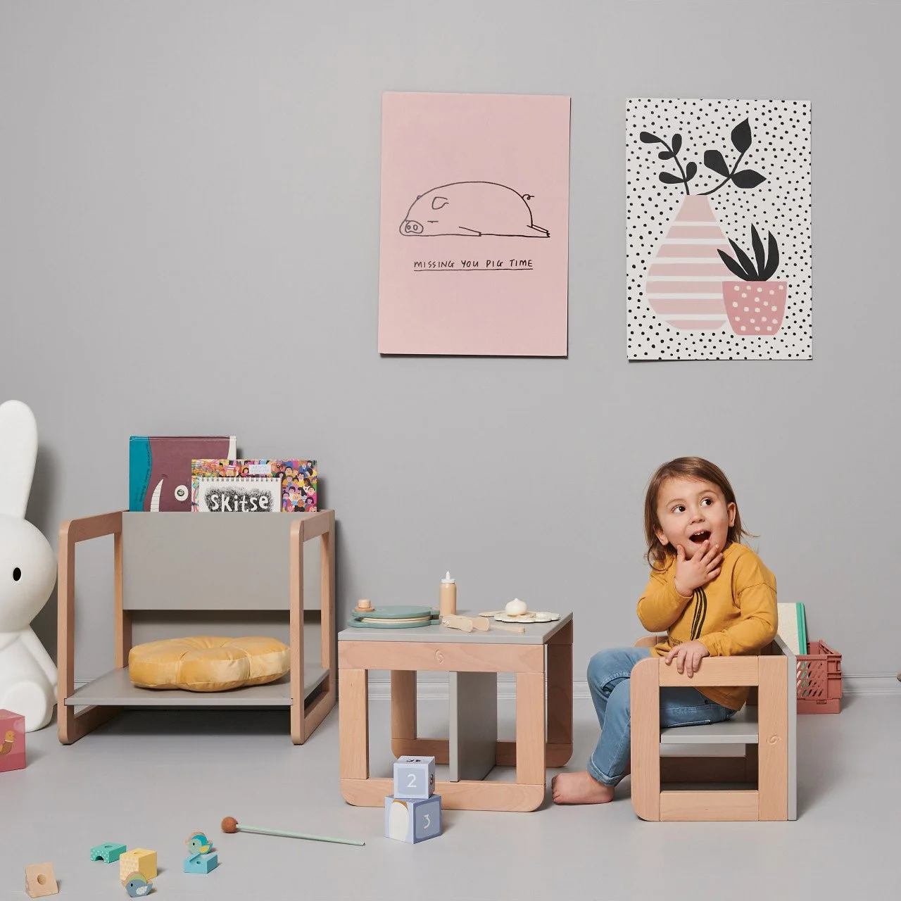 Setul de lemn 8in1 Mob este mobilierul indispensabil din camera copilului tau.
